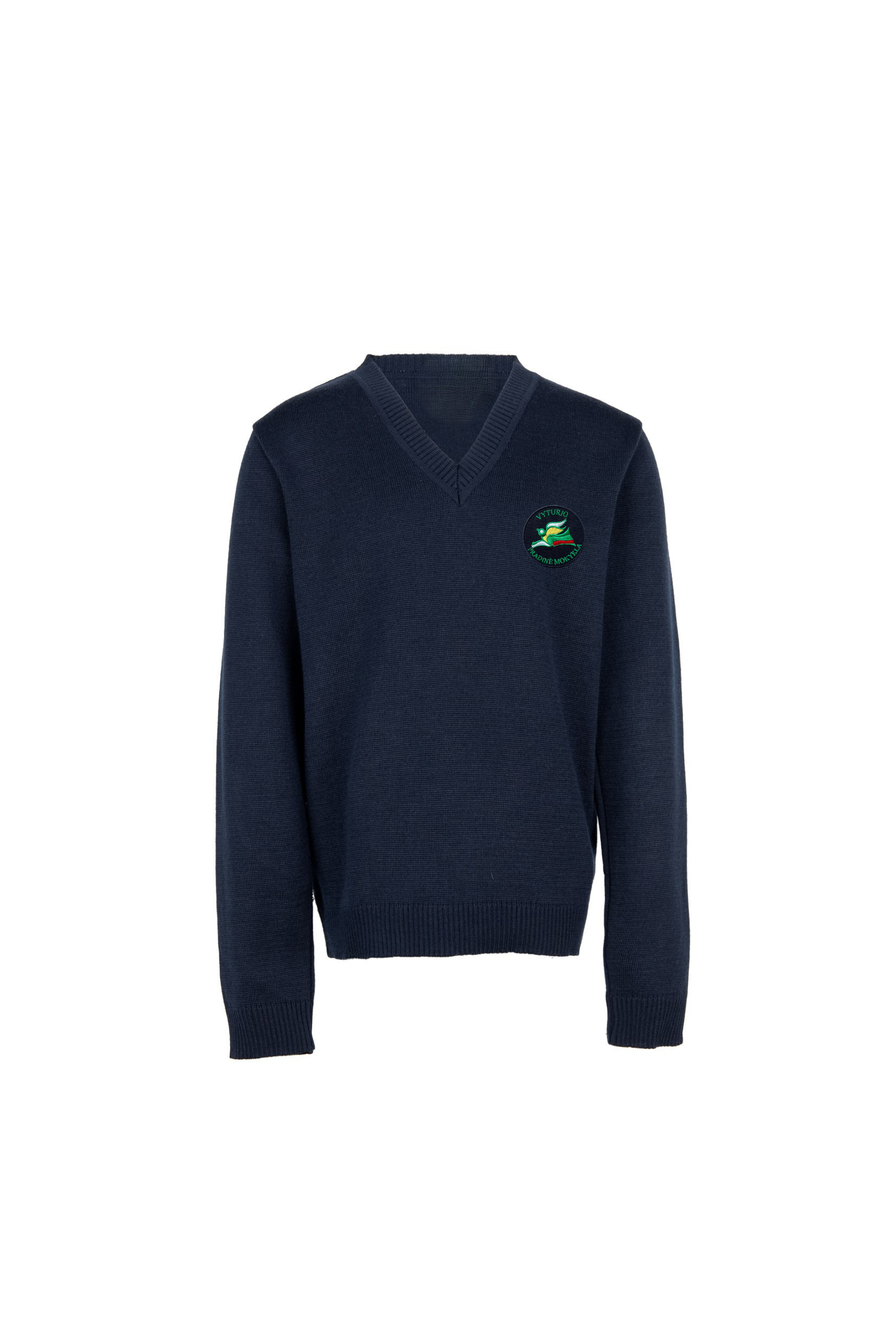 •  Megztinis V formos apykakle ir mokyklos emblema