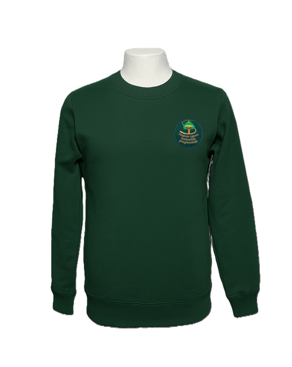 Trikotažinis sportinio tipo bliuzonas su mokyklos emblema