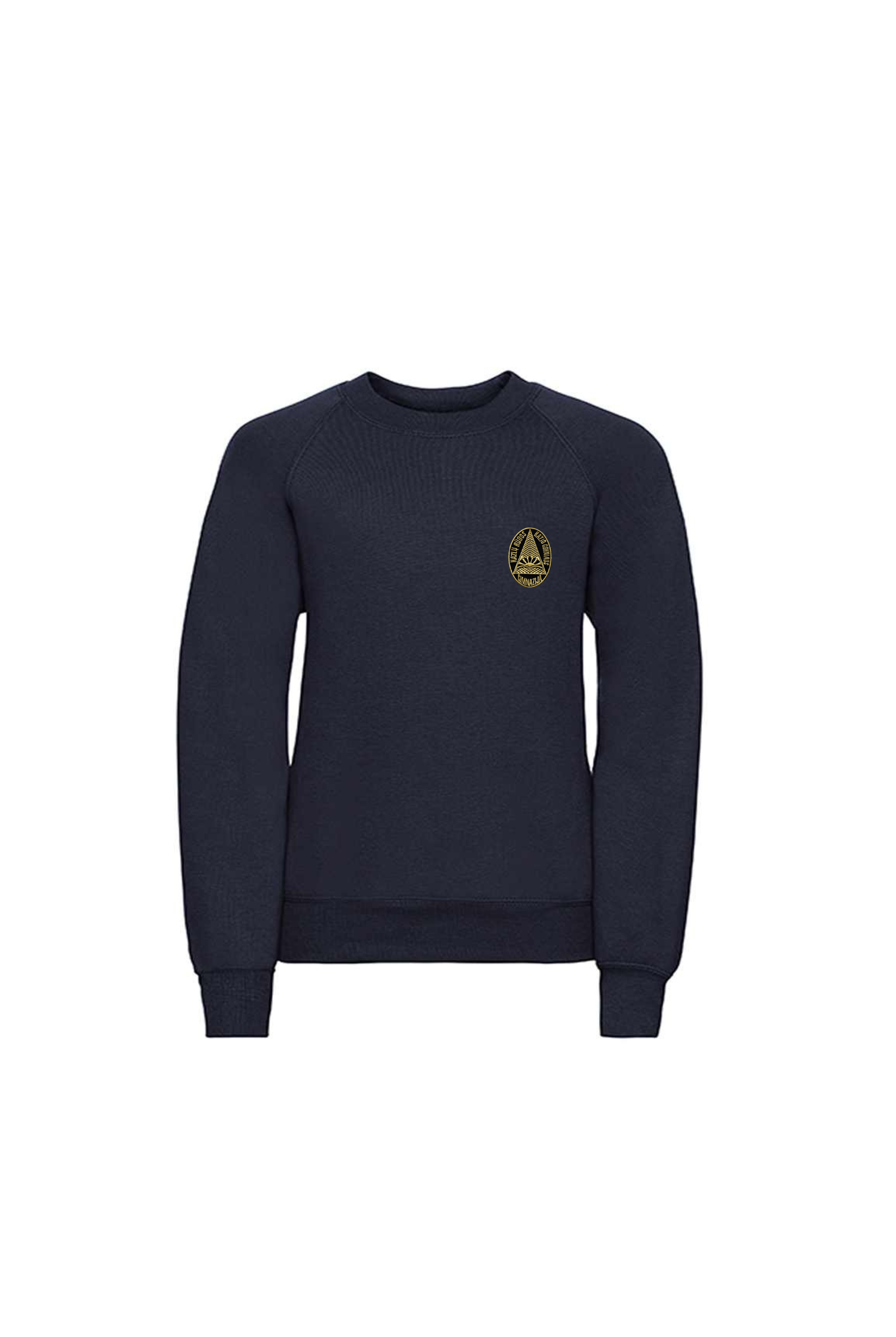 Trikotažinis džemperis be gobtuvo su mokyklos emblema