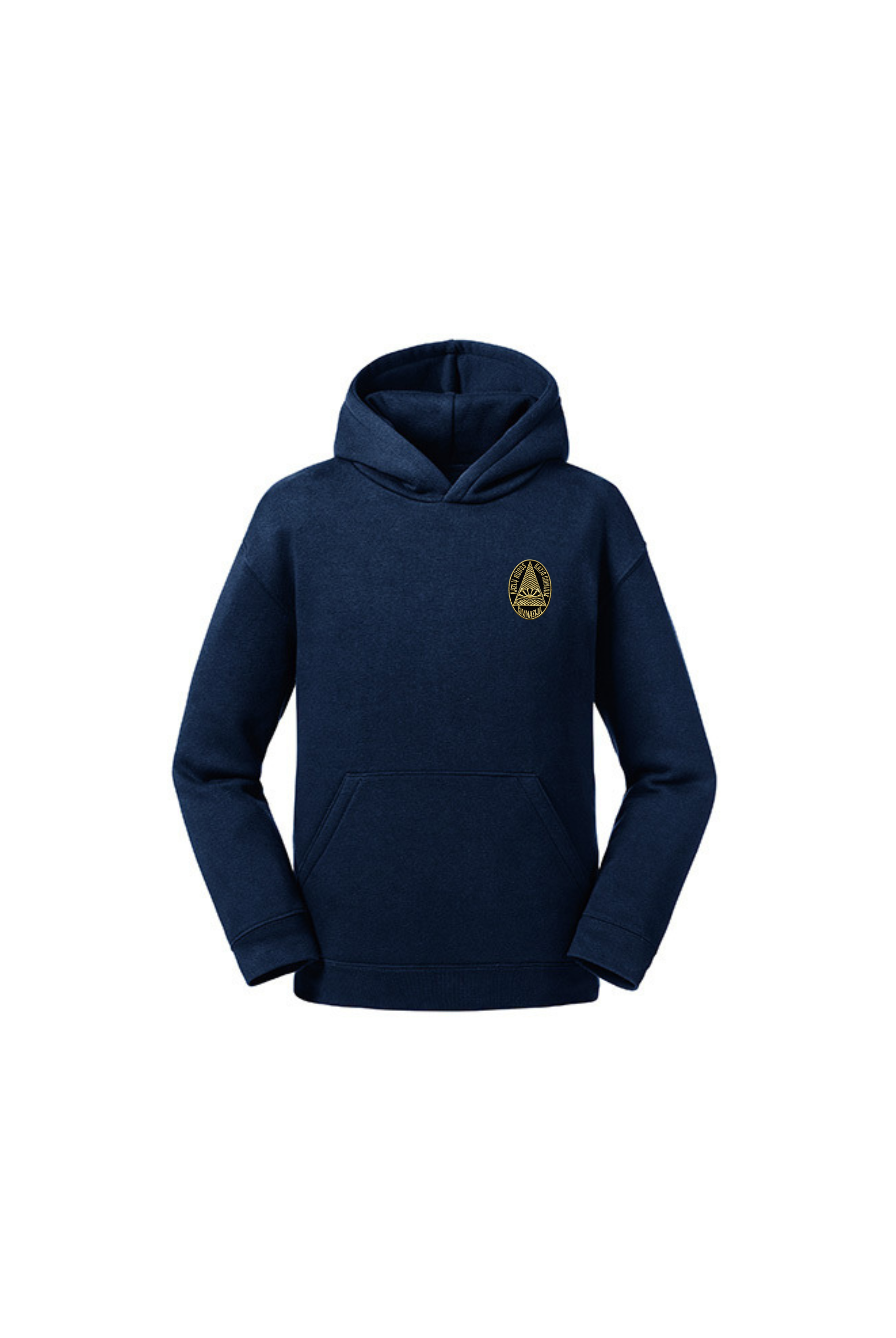 Trikotažinis sportinio tipo džemperis su gobtuvu ir mokyklos emblema