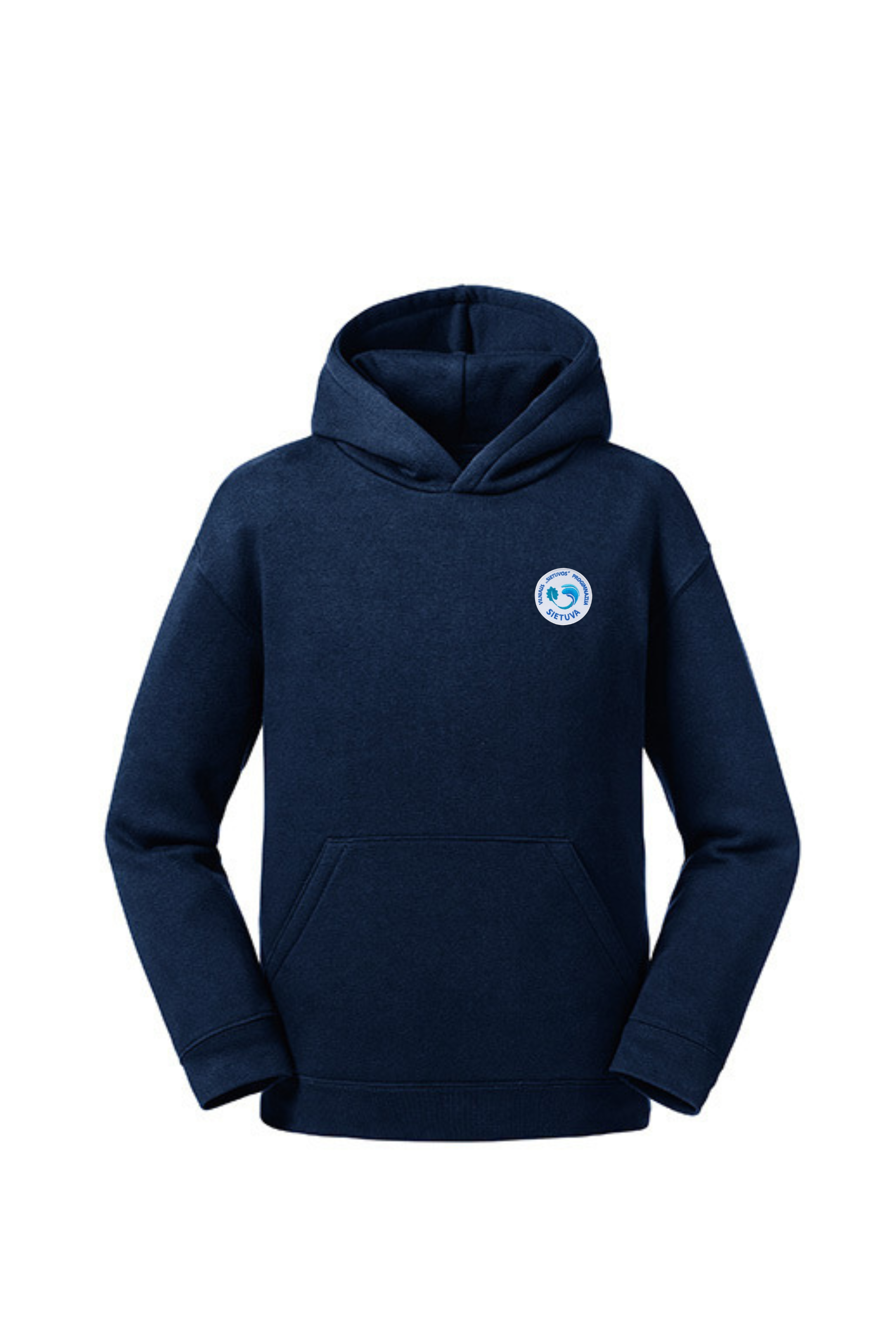 Trikotažinis sportinio tipo džemperis su gobtuvu ir mokyklos emblema